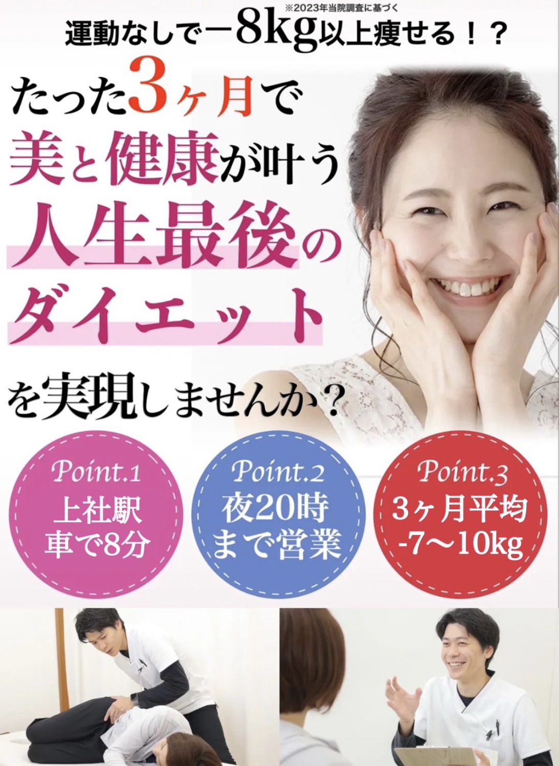 当院の人生最後のダイエットコースを「ぜひやってみたい!」思っていただいた方のみのご案内となりますので、お気軽にお越しください。